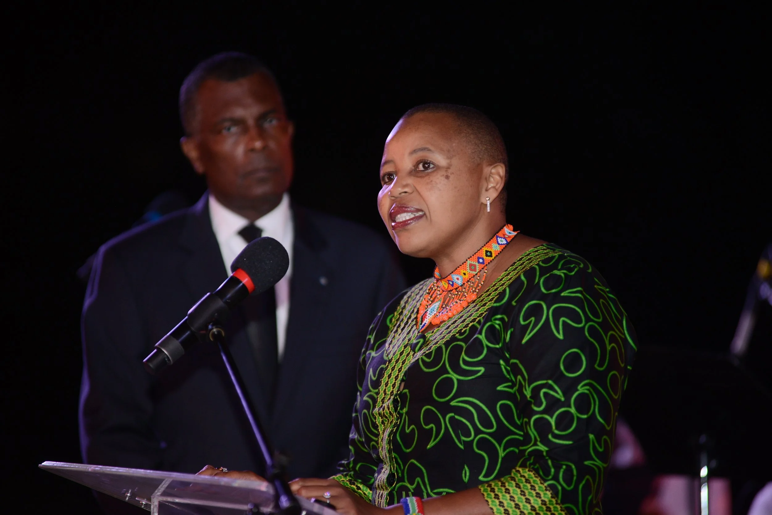 Her Excelleny, Ambassador Mathu Joyini, Permanent Representative of South Africa to the United Nations in New York and The Honorable Fred Mitchell, Minister of Foreign Affairs of The Bahamas welcoming international dignitaries and guests.